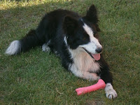 Dzisiaj postanowiłam wykąpać troszkę brudaska. Stała jak za kare - nie uciekała ale też nie merdała ogonem z radości. Chyba raczej nie przepada za kąpielą ale od czasu do czasu musi to przejść. Po kąpieli obowiązkowe wytrząsanie się i najlepiej blisko ludzi, żeby mieli za swoje! Niech wiedzą co to znaczy być mokrym. Po kąpieli poszliśmy na spacer do parku. Oczywiście "na dzień dobry" Tami dorwała patyk, obok którego nie potrafiła przejść obojętnie. Musiałyśmy się